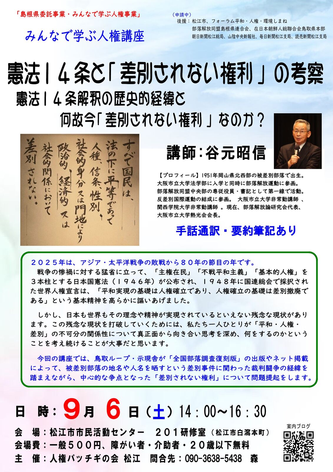 協賛 : フォーラム平和・人権・環境しまね、憲法を活かす会