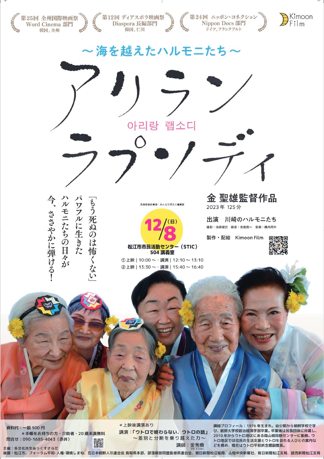 「島根県委託事業・みんなで学ぶ人権事業」 映画『アリランラプソディ~海を越えたハルモニたち~』